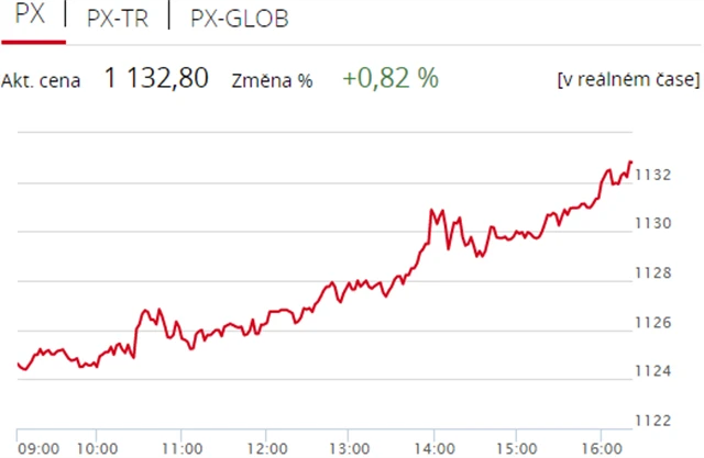 Pražská burza v pondělí po osmé v řadě uzavřela v plusu, když index PX zpevnil o 0,82 % na 1 132,8 bodu. Nahoru burzu táhly zejména Erste Group Bank, MONETA Money Bank a energetická skupina ČEZ. Nedařilo se naopak likérce Stock Spirits. Objem obchodů byl s 511 miliony korun mírně podprůměrný.