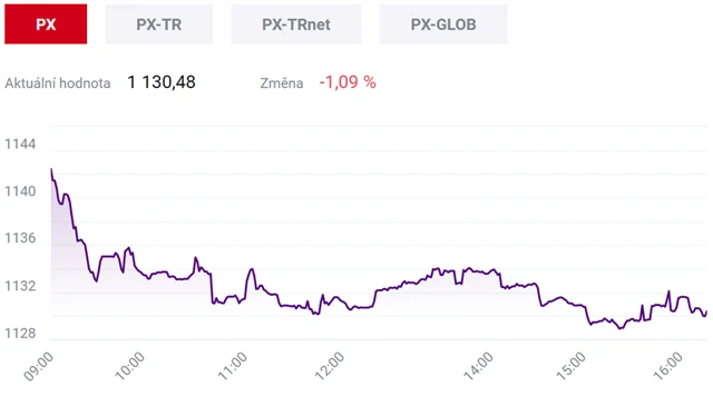 Pražská burza zahájila týden prudkým poklesem, index PX odepsal 1,09 % na 1 130,48 bodu. Nejvíce ztratily cenné papíry likérky Stock Spirits, které zlevnily o 2,91 % na 63,50 Kč. V plusu se z hlavních titulů udržela pouze mediální společnost CME, jež zpevnila o 0,2 % na 102,20 Kč. Objem obchodů byl se zhruba 250 miliony korun podprůměrný.