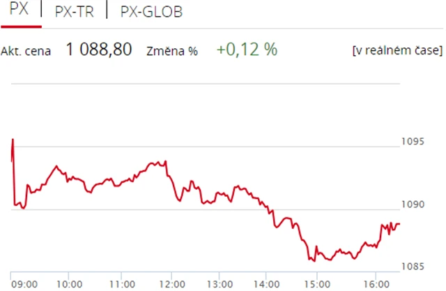 Pražská burza se v pondělí odrazila od ztráty ze závěru minulého týdne, když index PX zpevnil o 0,12 % na 1 088,8 bodu. Nahoru burzu táhly zejména akcie Erste Group Bank a Komerční banky, výrazně naopak ztratila pojišťovna VIG. Objem obchodů byl s 358 miliony korun podprůměrný.
