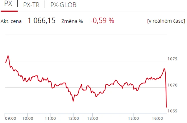Pražská burza v úterý nenavázala na zisk z pondělního obchodování, index PX odevzdal 0,59 % na 1 066,15 bodu. Dolů burzu stáhly zejména akcie polostátní společnosti ČEZ a Komerční banky, dařilo se naopak antivirové firmě Avast. Objem obchodů byl s 605 miliony korun mírně nadprůměrný.