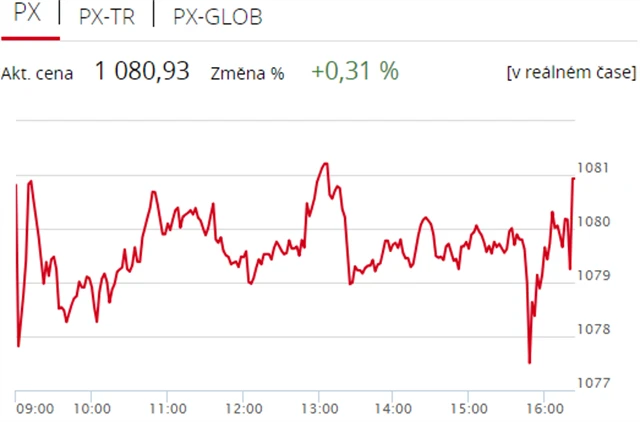 Pražská burza začala nový týden v zelených číslech, když index PX v pondělí zpevnil o 0,31 % na 1 080,93 bodu. Nahoru jej táhly cenné papíry polostátní společnosti ČEZ, nedařilo se naopak Erste Group Bank. Objem obchodů byl s 689 miliony korun nadprůměrný.