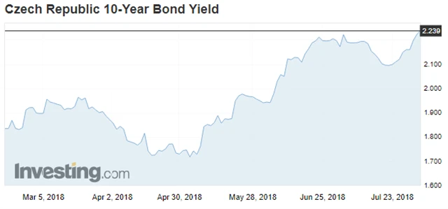 ČNB obvykle uvádí, že zpřísnění měnových podmínek posílením měny o 1 % je ekvivalentní zvýšení sazeb o 0,25 procentního bodu. To znamená, že na konci druhého čtvrtletí chyběla až dvě zvýšení úrokových sazeb o 0,25 procentního bodu.
