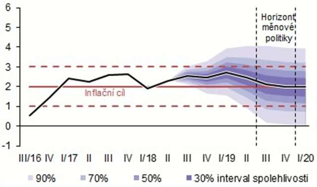 V případě inflace ČNB odhad pro třetí čtvrtletí příštího roku zvýšila na 2,1 %. V květnové prognóze počítala s 1,8 %. Pro čtvrté čtvrtletí 2019 odhad banka zvýšila na 2 % z předchozích 1,9 %.