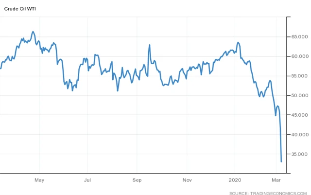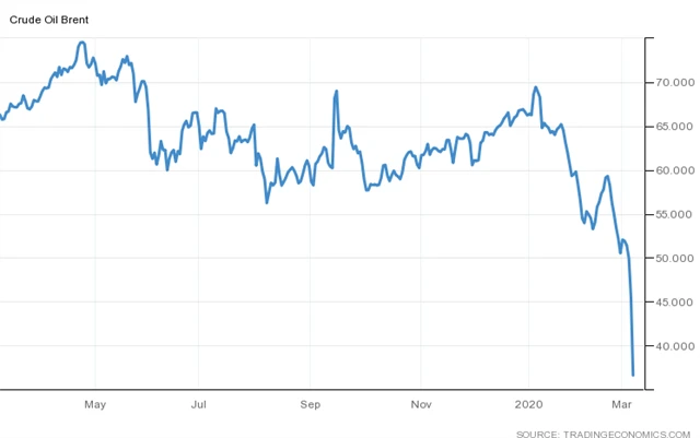 OPEC+ se v pátek nedomluvil na dalším snížení produkce, naopak se zdá, že se rozpadla 3 roky trvající kooperace mezi těmito zeměmi. Saúdská Arábie navíc o víkendu šokovala oznámením, že od dubna navýší těžbu a sníží ceny své ropy (nejvíce za 30 let), což vyústilo v propad cen ropy až o 30 % po pátečním již tak hlubokém 10% sešupu.