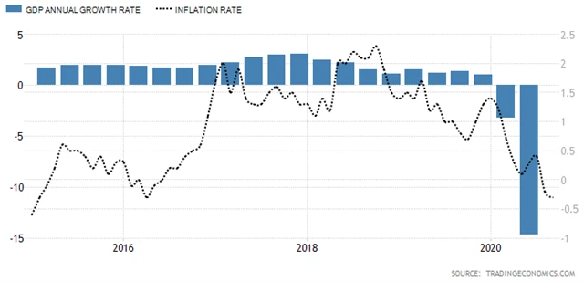 HDP eurozóny ve druhém čtvrtletí spadl o 14,7 %, ceny v září klesly o 0,3 %