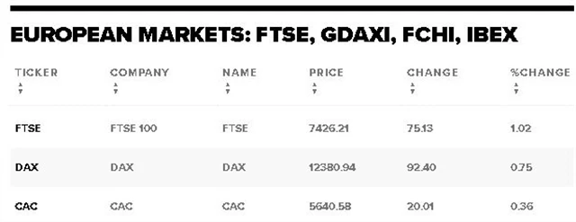 Hlavní index londýnské burzy FTSE 100 vedl vzestup a dosáhl nejvyšší úrovně od 2. srpna, když ceny akcií ještě podpořila slábnoucí libra. Kurz britské měny prudce oslabil poté, co člen měnového výboru Bank of England Michael Saunders řekl, že dalším krokem centrální banky bude pravděpodobně snížení úrokových sazeb, a to bez ohledu na vývoj politického dramatu okolo brexitu. Index FTSE 100 si připsal 1,02 %, německý DAX stoupl o 0,75 % a francouzský CAC 40 si polepšil o 0,36 %.