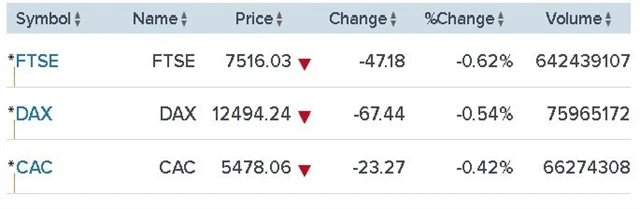 Celoevropský akciový index STOXX Europe 600 uzavřel se ztrátou 0,32 procenta, přičemž v záporném pásmu seanci zakončila i většina jeho sektorů. Hlavní index londýnské burzy FTSE 100 poklesl o 0,62 procenta, německý DAX odepsal 0,54 procenta a francouzský CAC 40 si pohoršil o 0,42 procenta.