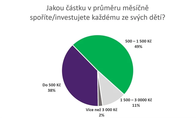 11 % rodičů spoří nebo investuje každému ze svých potomků 1 500 až 3 000 korun měsíčně, o něco více pak mladší rodiče z větších měst nad 100 000 obyvatel a s vysokoškolským vzděláním. Jen 2 % rodičů zvládají odkládat na budoucnost dětí více než 3 000 korun za měsíc.