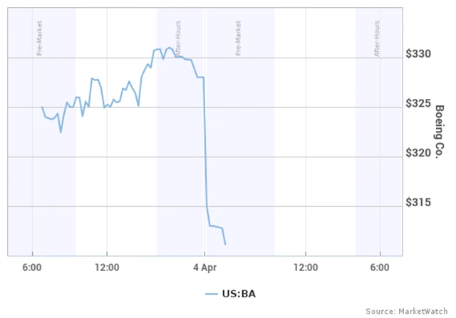List firem, kterých se dotknout čínská cla, obsahuje také automobilky a výrobce letadel. Akcie Boeingu v premarketu ztrácí více než 5 %.