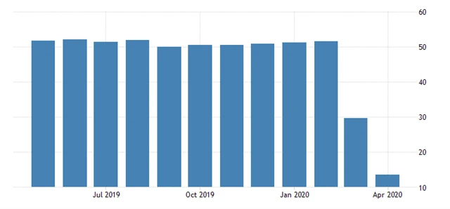 Index podnikatelské aktivity se v dubnu propadl na 13,5 bodu z březnových 29,7 bodu. Dostal se tak nejníže od roku 1998, kdy se tato data začala sledovat. Nachází se přitom hluboko pod klíčovou padesátibodovou hranici, která je předělem mezi růstem a poklesem aktivity.