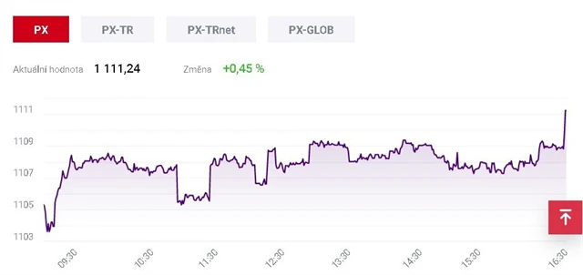 Index pražské burzy PX během čtvrtečního obchodování stoupl o 0,45 % na 1111,24 bodu. Nejobchodovanější titul, Komerční banka, skončil v minusu, ale její ztrátu vynahradily zisky energetického podniku ČEZ a Erste Group Bank. Celkový zobchodovaný objem čítal přes 348 milionů korun. Burza vzrostla už pošesté v řadě.