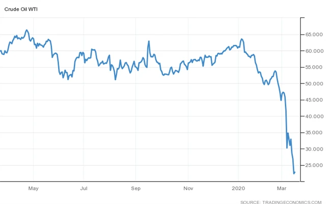 Analytici TD Securities si také myslí, že globální poptávka po ropě může v meziročním srovnání klesnout o 4,3 milionu barelů ropy denně. "Cena ropy se může opět přiblížit ke 40 dolarům jen v případě, že OPEC+ dospěje k dohodě o řízení nabídky a když začne opadat negativní vliv šíření koronaviru po světě," míní TD Securities.