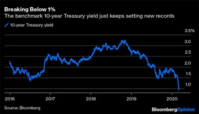 Výnos 10letých amerických vládních dluhopisů v úterý večer poprvé v historii klesl pod 1 %. Vývoj situace na dluhopisovém trhu je odrazem extrémního zájmu o méně riziková aktiva. Zájem o americké státní dluhopisy vzrostl poté, co Fed nečekaně snížil svou základní úrokovou sazbu, a de facto tak naznačil, že ekonomické dopady šíření koronaviru jsou a budou mnohem výraznější, než se dosud předpokládalo.