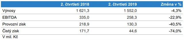 Za samotné druhé čtvrtletí společnost na úrovni čistého zisku vykázala 44,6 milionu Kč. Tržby v druhém čtvrtletí dosáhly 1,55 miliardy Kč a provozní zisk EBITDA byl 258,3 milionu Kč.