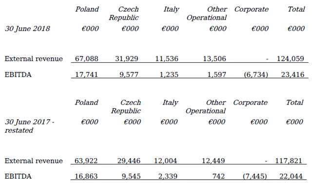Tržby v Polsku dosáhly 67,09 milionu eur, a proti roku 2017 se tak zvýšily o 3,2 milionu eur. Provozní zisk EBITDA v Polsku dosáhl 17,74 milionu eur, meziročně tak zaznamenal zvýšení o 0,9 milionu eur.