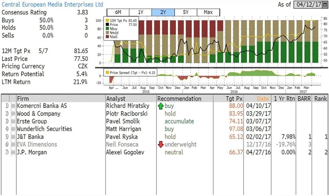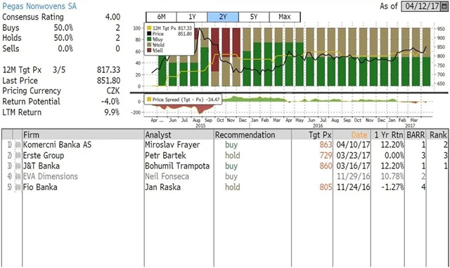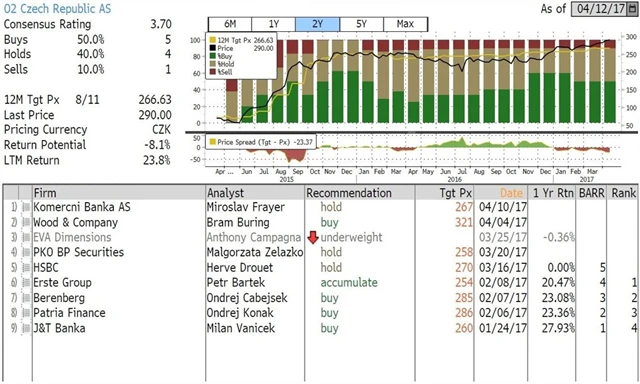 Jaký názor mají na akcie O2 Czech Republic, CME a Pegasu Nonwovens domácí a zahraniční analytici? Jaké jsou jejich dvanáctiměsíční cílové ceny a jak znějí jejich aktuální investiční doporučení? Nabízíme jejich přehled, jak jej k 12. 4. 2017 shromáždila agentura Bloomberg.