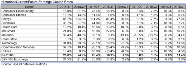 Jak se vyvíjely odhady růstu či poklesu zisků a tržeb amerických firem za 1Q2019?
