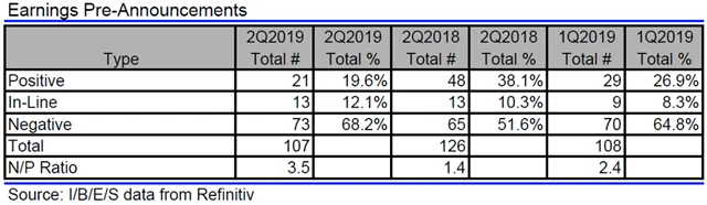 Jak se vyvíjejí odhady růstu či poklesu zisků amerických firem za 2Q2019?