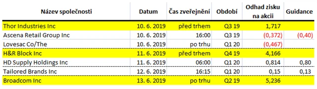 Poznámka: Odhady analytiků jsou aktuální k 6. 6. 2019.