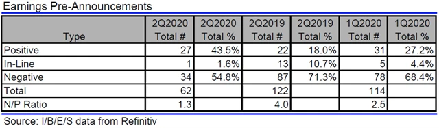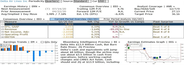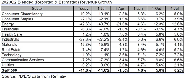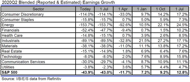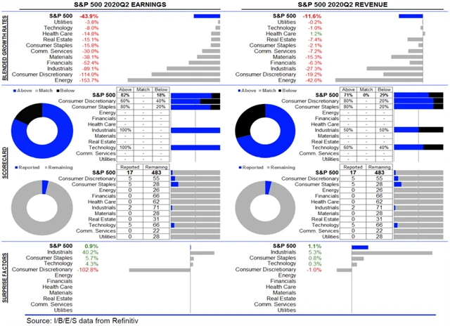 Jak se vyvíjejí odhady růstu či poklesu zisků a tržeb amerických firem za 2Q2020?