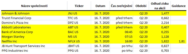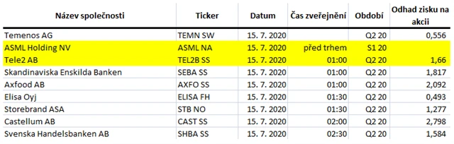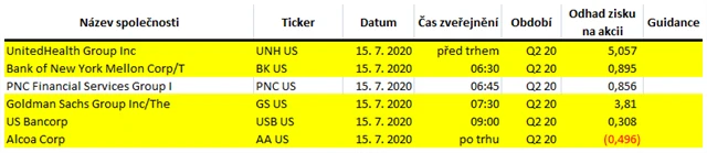 Poznámka: Odhady analytiků jsou aktuální k 8. 7. 2020.
