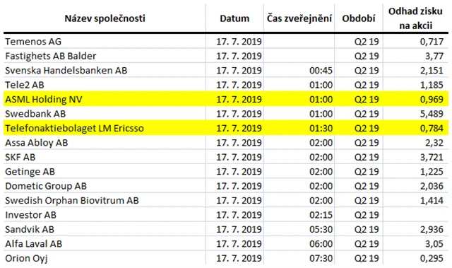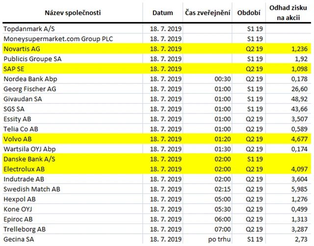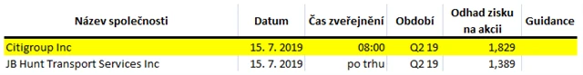Poznámka: Odhady analytiků jsou aktuální k 11. 7. 2019.