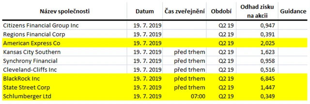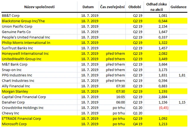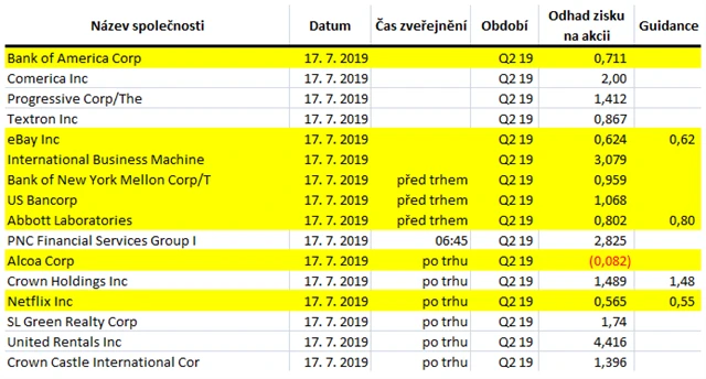 Očekávané výsledky světových firem v týdnu od 15. července (12. 7. 2019)
