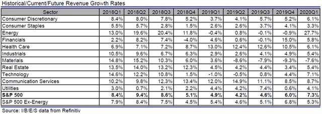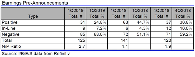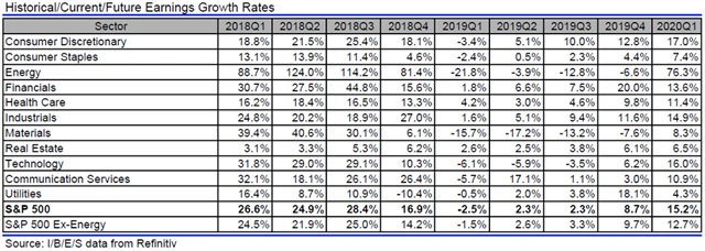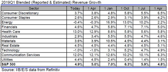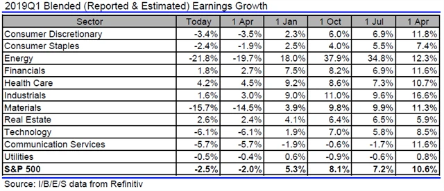 Jak se vyvíjejí odhady růstu či poklesu zisků a tržeb amerických firem za 1Q2019?