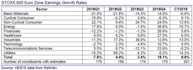 Jaký vývoj zisků a tržeb evropských firem za 1Q2019 čekají analytici?