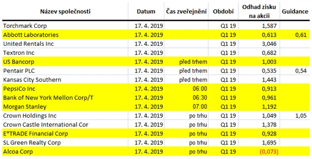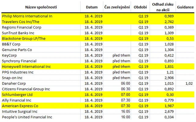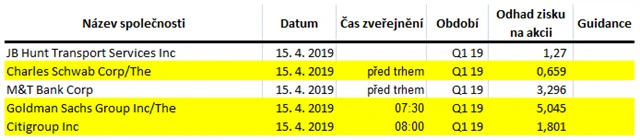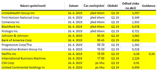 Očekávané výsledky světových firem v týdnu od 15. dubna (12. 4. 2019)