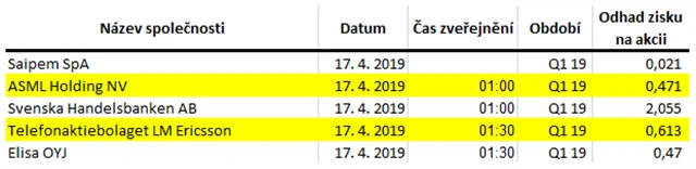 Poznámka: Odhady analytiků jsou aktuální k 11. 4. 2019.