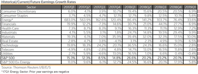 Jak se vyvíjely odhady růstu či poklesu zisků a tržeb za 1Q2018?