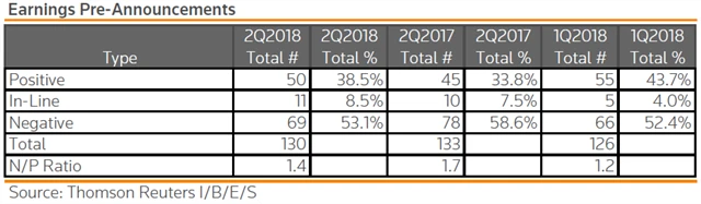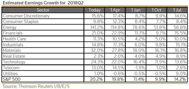Jak se vyvíjejí odhady růstu či poklesu zisků za 2Q2018?