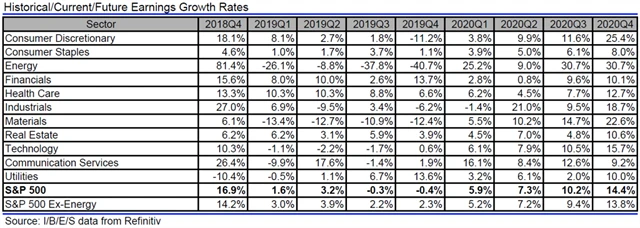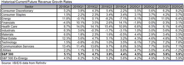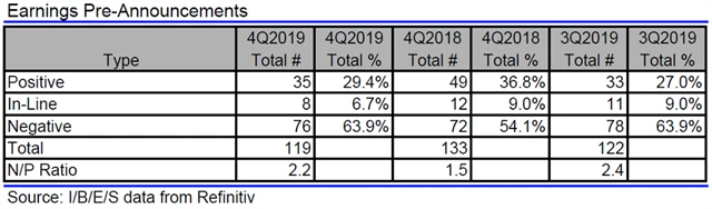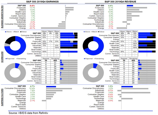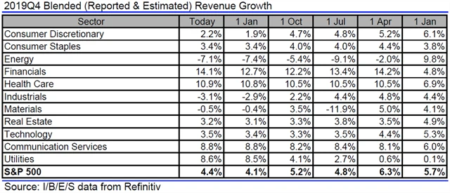 Jak se vyvíjejí odhady růstu či poklesu zisků a tržeb amerických firem za 4Q2019?
