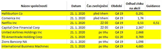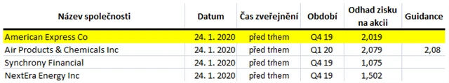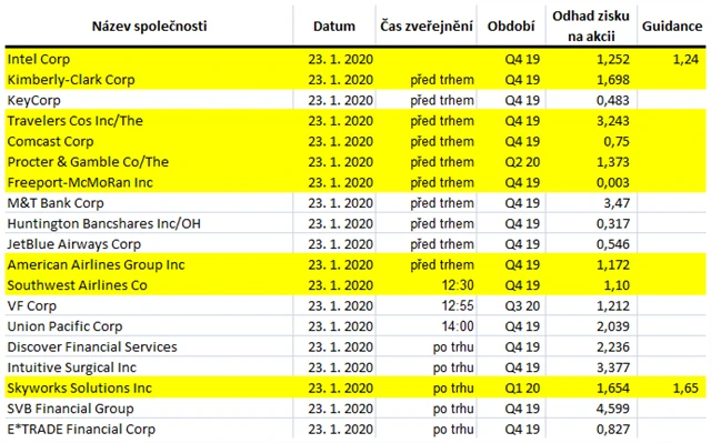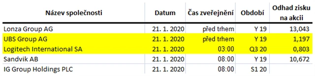 Očekávané výsledky světových firem v týdnu od 20. ledna (17. 1. 2020)
