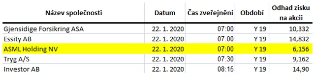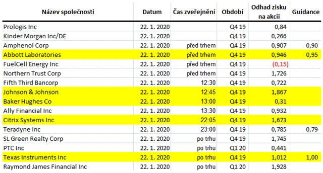 Poznámka: Odhady analytiků jsou aktuální k 17. 1. 2020.