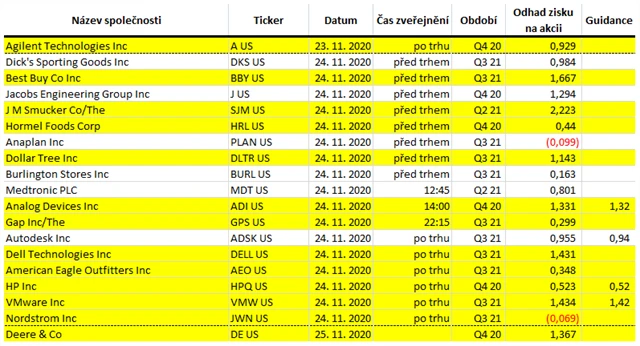 Očekávané výsledky světových firem v týdnu od 23. listopadu
