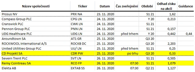 Poznámka: Odhady analytiků jsou aktuální k 19. 11. 2020.