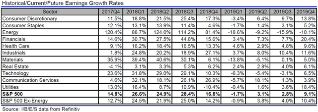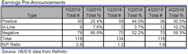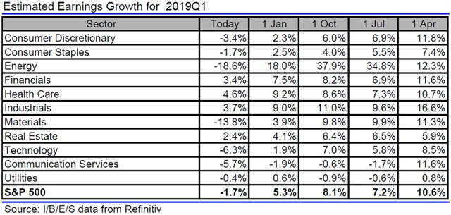 Jak se vyvíjejí odhady růstu či poklesu zisků za 1Q2019?