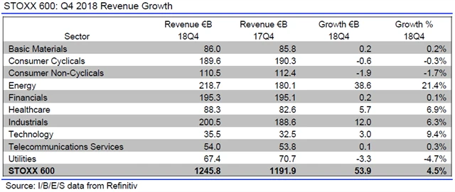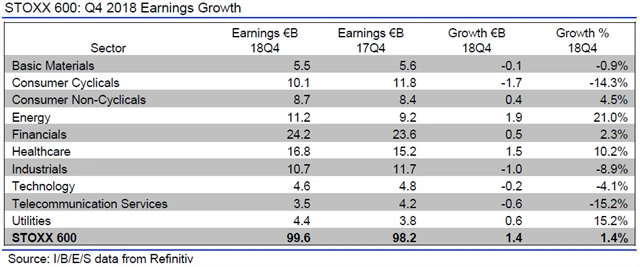 Jaký vývoj zisků a tržeb evropských firem za 4Q2018 čekali analytici?