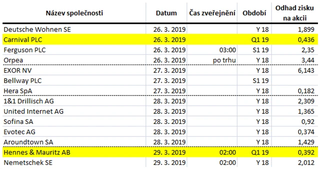 Níže najdete odhady výsledků jednotlivých společností, které oznamují hospodářská čísla v následujícím týdnu.