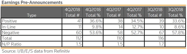 Jak se vyvíjejí odhady růstu či poklesu zisků za 4Q2018?