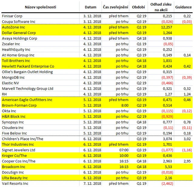 Očekávané výsledky světových firem v týdnu od 3. prosince