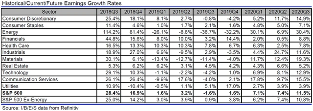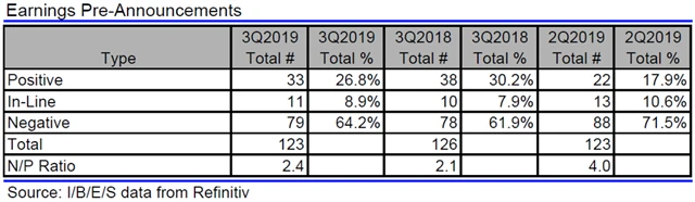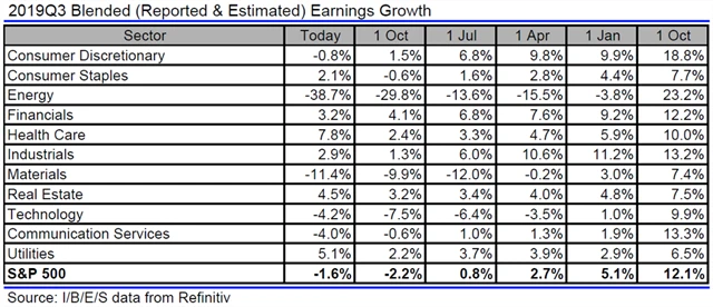 Jak se vyvíjejí odhady růstu či poklesu zisků a tržeb amerických firem za 3Q2019?