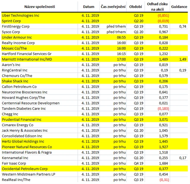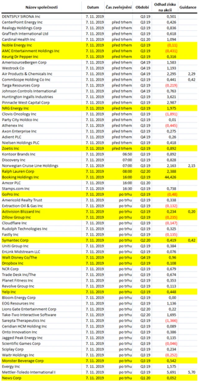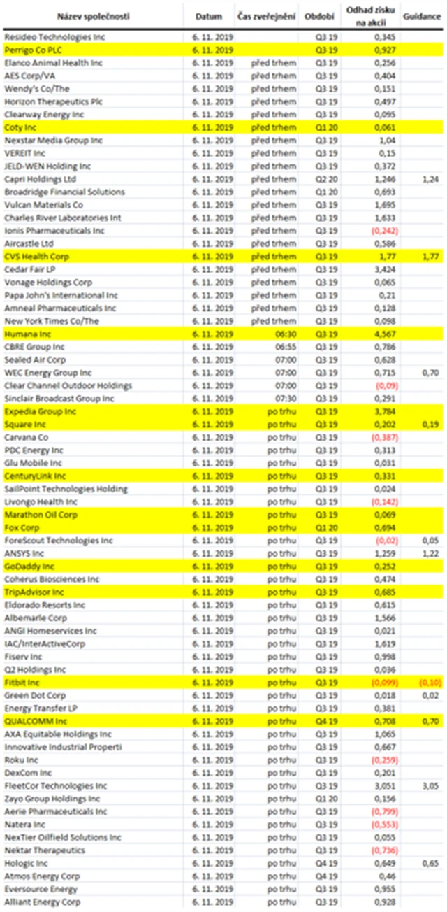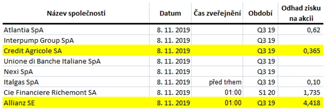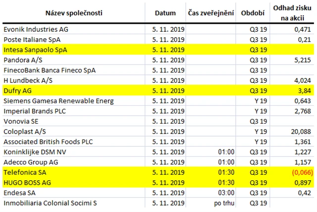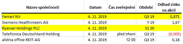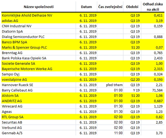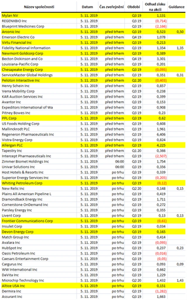 Očekávané výsledky světových firem v týdnu od 4. listopadu (1. 11. 2019)