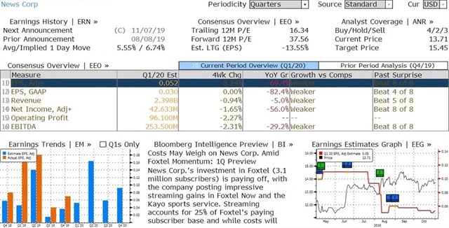 Poznámka: Odhady analytiků jsou aktuální k 31. 10. 2019.