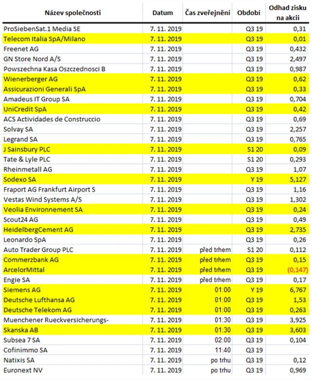 Jaká překvapení přinesly oznámené výsledky evropských firem za 3Q2019?