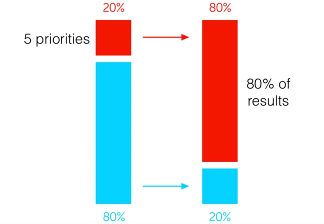 Warren Buffett při zacházení s časem vychází mimo jiné ze zjištění, že 80 % celkových výsledků zajišťuje obvykle jen 20 % vykonávaných činností. I proto je podle Věštce z Omahy nejefektivnější zaměřit se právě na takzvané jádrové činnosti a jim se věnovat naplno.