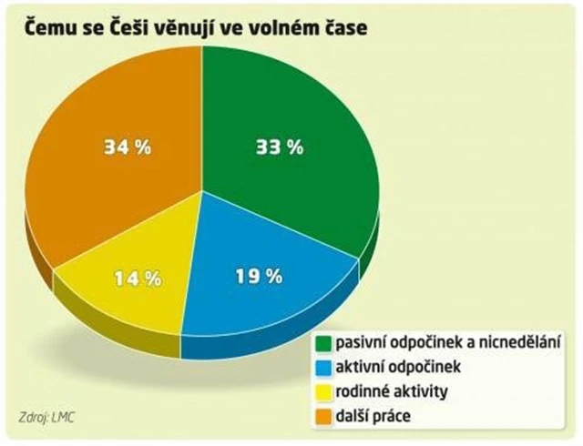 Zhruba třetina Čechů nevěnuje dostatek času odpočinku. Vyplývá to z aktuálního průzkumu pracovního portálu Práce.cz, který provozuje společnost LMC. Přeceňování vlastních schopností a nedostatek oddechu mají přitom výrazně negativní vliv na psychický i fyzický stav jedince.