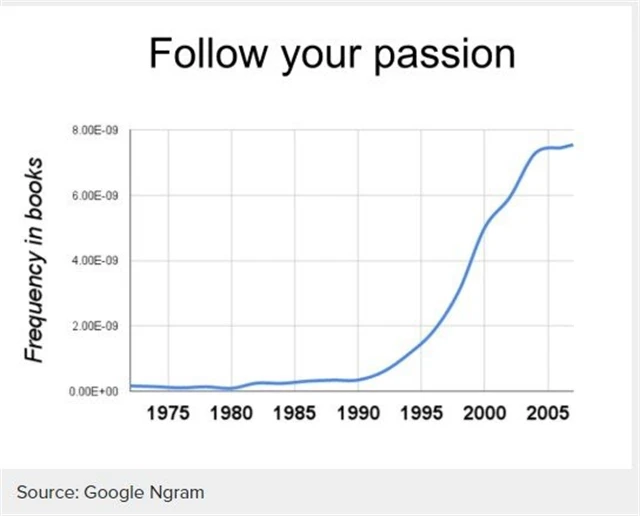 Klasický nesmysl, byť velice populární. Podle webu 80,000 Hours se věta "následujte svou vášeň" objevuje v knihách od roku 1975 stále častěji.